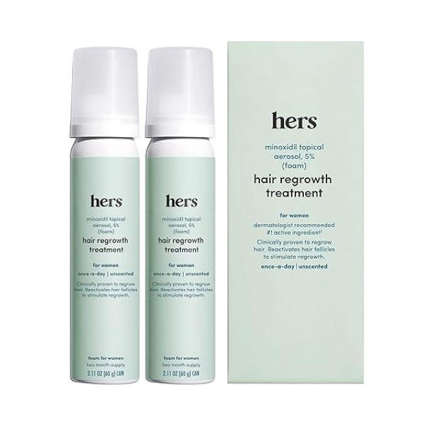 Hers Hair Regrowth Treatment helps reduce hair thinning and supports stronger, healthier-looking hair. It nourishes the scalp, improves hair density, and enhances overall texture. With continuous use, it promotes thicker hair growth and helps minimize breakage caused by weak roots.